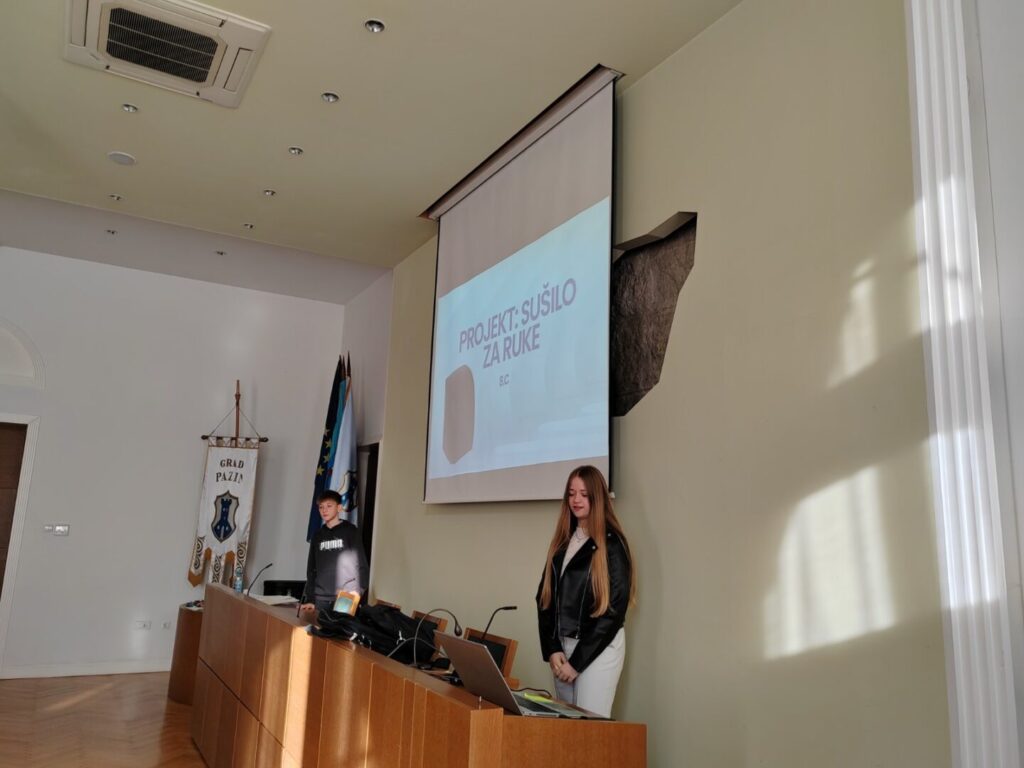 Pobjedu je odnio projekt 8. c razreda “Sušila za ruke” kojim su promišljali o potrebama unutar škole te usporedili potrošnju struje s potrošnjom papira kako bi ukazali na uštedu koju bi škola mogla postići. Predstavnici razreda, Marta Kaser i Antonio Londero, odlično su se snašli u ulozi prezentatora te su spremno odgovarali na razna pitanja publike.