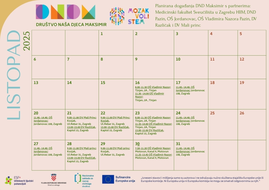 Održat će se ukupno godišnje 120 radionica, od kojih 15 u listopadu 2025 godine