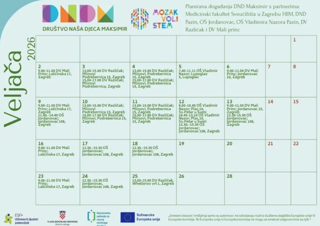Održat će se ukupno godišnje 120 radionica, od kojih 23 u veljači 2026. godine.