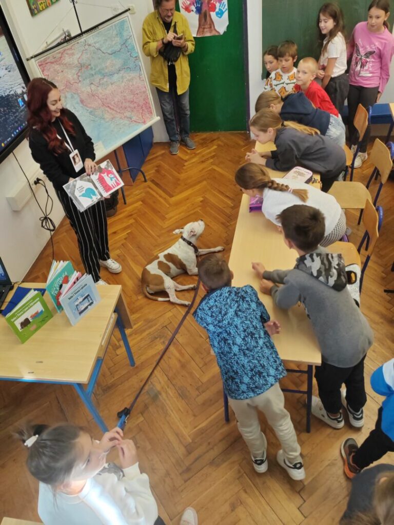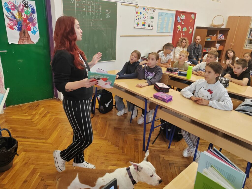I ove nas je godine posjetila “Ovca u kutiji”, točnije autorica brojnih slikovnica, Alma Pongrašić. Ugodno smo se iznenadili kad je uz nju stigla i pratnja, pas Gili. Alma nam je rado ispričala svoje dogodovštine sa Gili. Saznali smo puno o volonterskom radu, udomljavanju pasa, brizi i njezi. Pratili smo predstavljanje njezinih slikovnica i uživali u zajedničkom čitanju slikovnice s naslovom “Moja sestra Tratinčica”. Naravno, glavni lik je … pas! Želimo sreću svim životinjama u prihvatilištima, azilima za životinje, na cesti ….. da što prije pronađu svog vlasnika, svoj dom. Hvala Almi i Gili! Sretan vam Svjetski dan zaštite životinja (4.10.)